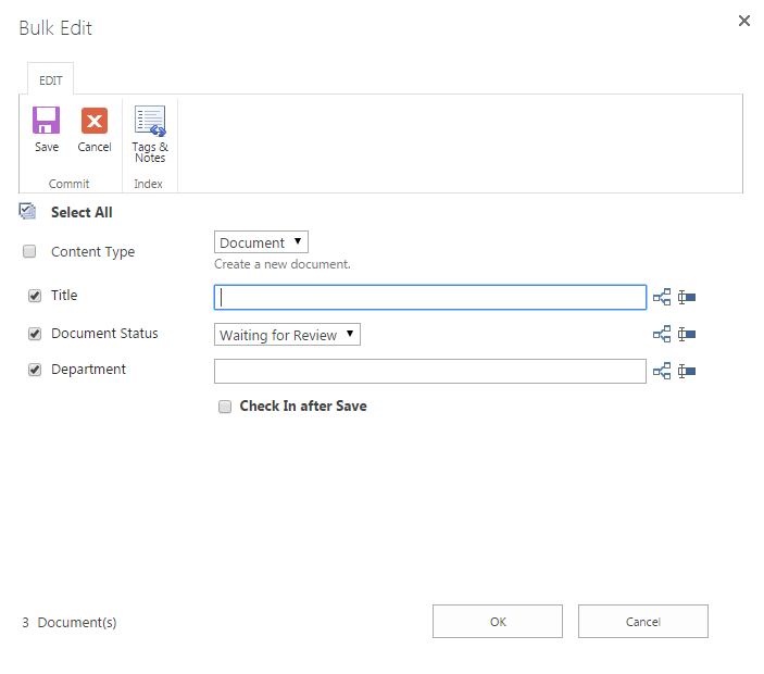 In SharePoint, you can use the Tags & Notes feature on Files ribbon to add a tag or note for the document. But it doesn’t allow you to add tags and notes for more than one document at a time. If you want to add tags and notes for multiple documents, you will have to do it one by one. With Bulk Properties Editor, you can get it done faster. Bulk Properties Editor allows you to bulk add tags and notes for multiple documents, no matter how many documents are chosen.