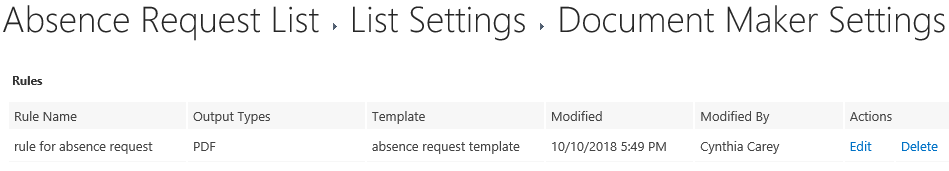 And then, you will find that a rule is created in the Document Maker Settings page.
