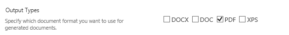 In Output Types section, select PDF. The document will be generated as PDF format, you can also select other output types.