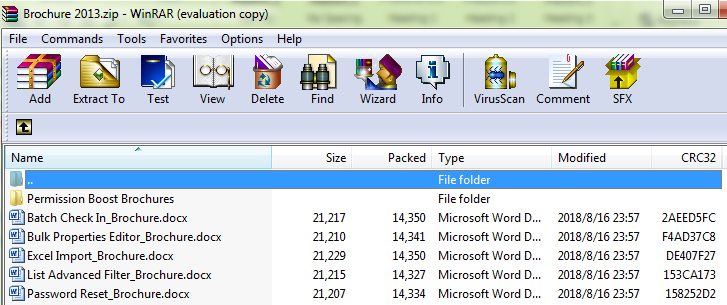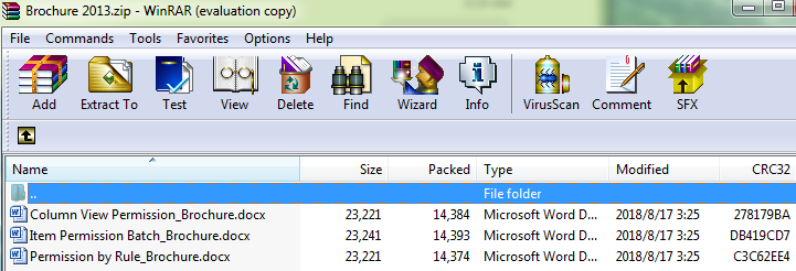Note that the Batch Check In_Brochure and the Column View Permission_Brochure are already existed in the Product Brochures. We store these documents in the ZIP file is for showing how overwrite existing files works when we unzip/extract the ZIP file into the current location.