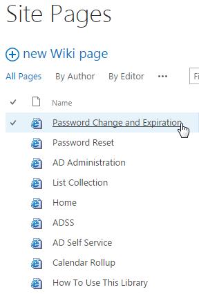 The web part can be added to most of the sites in the farm. But in this article we will create a separate SharePoint site page. We will call it Password Change and Expiration.