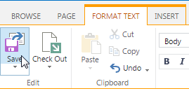 In the FORMAT TEXT tab, Edit group click on Save to save the changes in the page.