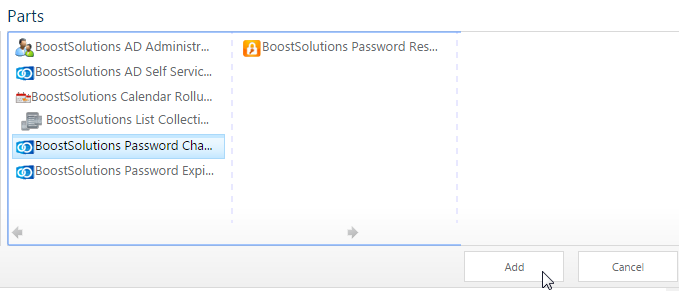 Choose the Password Change web part and click on Add button.