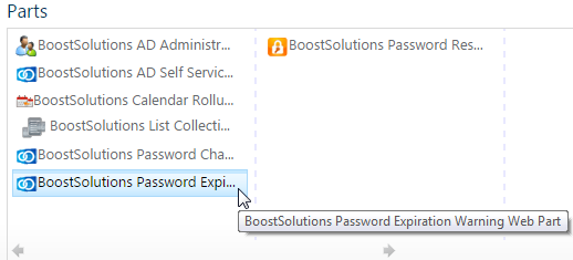 Repeat the steps 5 and 6. But next choose the Password Expiration Warning web part to add to the page.