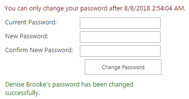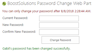 The web part is added to the SharePoint site. For this article we added it to the site page called Password Change and Expiration. You can check our other article to get more information on how to add the web part.