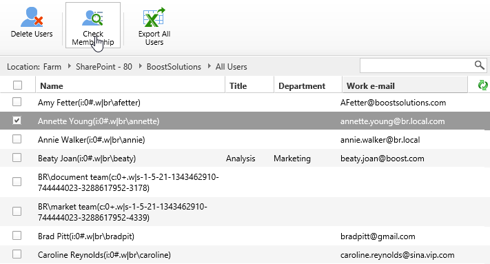 Navigate to the Users and Groups Management, under site collection – BoostSolutions. Click All Users.