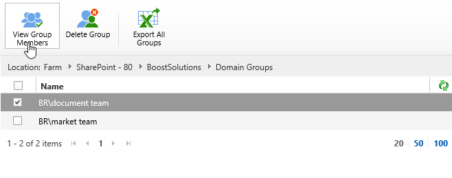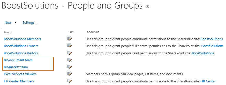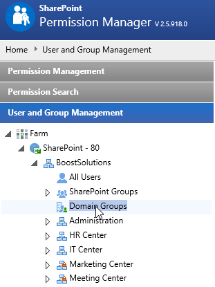 Navigate to the Users and Groups Management, under site collection – BoostSolutions. Click Domain Groups.