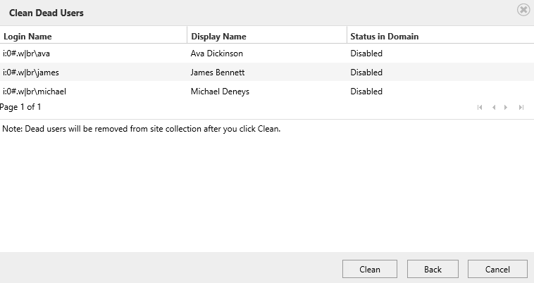 Once the operations complete, the dead users will be removed from the site collection and there will be a message appears as following.