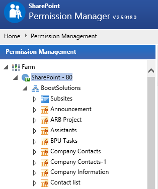 Navigate to the Permission Management and click one web application node – SharePoint 80.