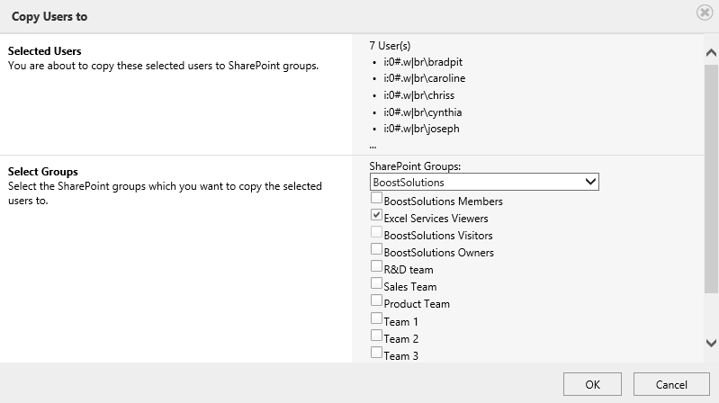 BoostSolutions’ Permission Manager provides a quick and easy way to copy or move SharePoint users from one SharePoint group to another.