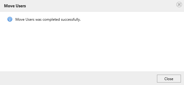 When the Move Users to dialog appears, you will see that all selected users are listed in Selected Users section.