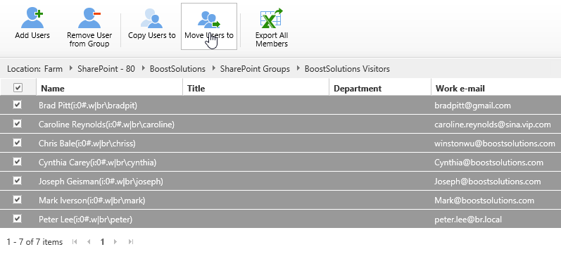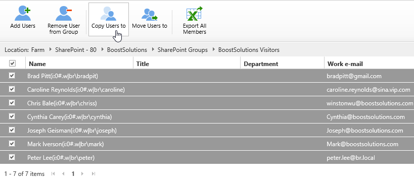 In this example, there are 7 users in one SharePoint group, we plan to copy and move these users to other SharePoint groups instead of adding them one by one.