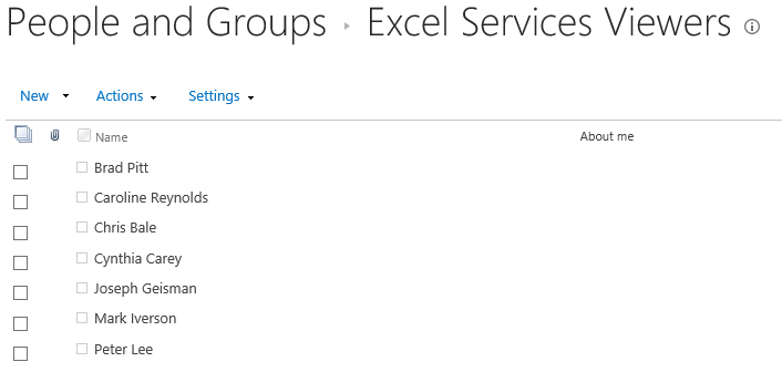 In Select Group section, select one SharePoint group - Excel services viewers. If the SharePoint group nests in another site, select the site name from the drop-down list firstly.