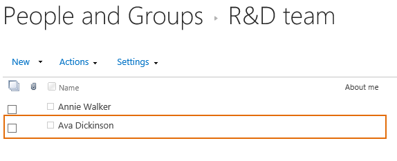 Check the SharePoint group – R&D team, the user Ava Dickinson has been added in the group.