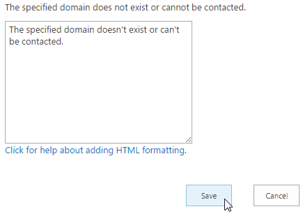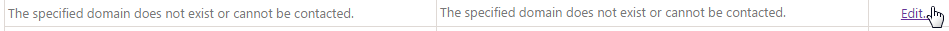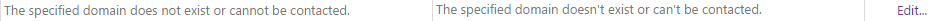 Now let’s make changes on some of the error messages and test if they appear correctly. To customize the error messages we need to click on Edit… on the right side of the listed error message. Let’s make changes to The specified domain does not exist or cannot be contacted error message. The following window will appear when we click on Edit… button.