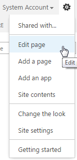 Find Site Settings menu on upper right corner and click on Edit Page.