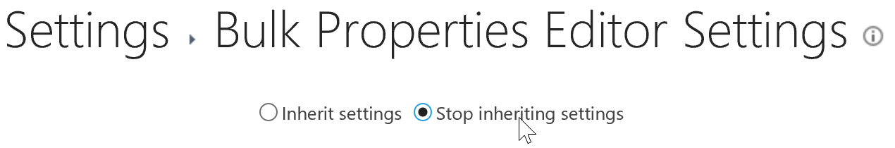 The Site Setting’s page is very similar with the List Setting’s page for Bulk Properties Editor, but you can find out that there is no that inherit settings section on the Site Setting’s page. The same as what we did in the List Setting, keep all settings in General Settings and Preserve Options as default.