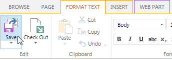 Let’s go to FORMAT TEXT tab on the ribbon and find Save button in the Edit group. Click on it to save the changes.