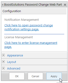 Following Password Change Web Part Configuration table will appear under the web part after clicking on the option.