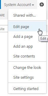 Find Site Settings menu on upper right corner and click on Edit Page.