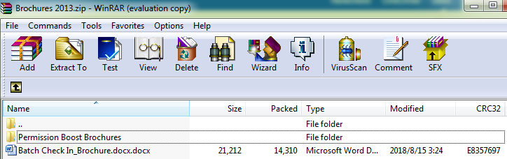 Note that the Batch Check In_Brochure and the Column View Permission Brochure are already existed in the Product Brochures. We store these documents in the ZIP file is for showing how overwrite existing files works when we unzip/extract the ZIP file into the current location.