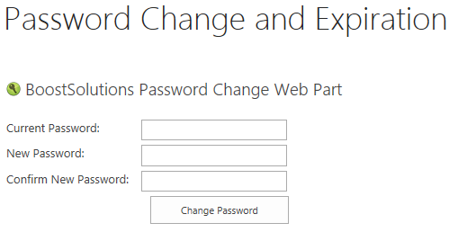 The web part is added to the SharePoint site. For this article we added it to the site page called Password Change and Expiration. Also, web application outgoing email server settings in SharePoint Central Administration or the custom SMTP settings in the Password Change settings must be configured. You can check our other articles to get more information on how to add the web part and configure the custom SMTP settings.