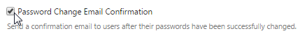 In this page we will only focus on Password Change Email Confirmation section. If we want to enable the feature we will need to check the box next to the title.