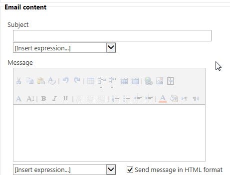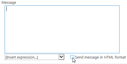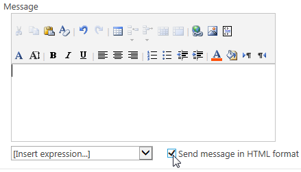 Next step is Message part. If you want the message to be sent in HTML format. Then check the box next to Send message in HTML format. When it is checked you will have more editing options.