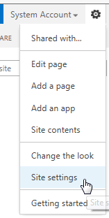 Click on the Settings menu on the upper right corner of the page and click on Site Settings.