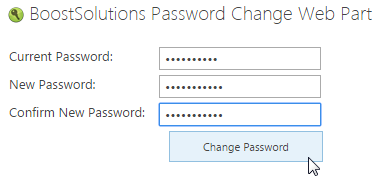 After logging in as Gabil navigate to the page where the web part is added to. Fill in the Current Password, New Password and Confirm New Password boxes and click Change Password.