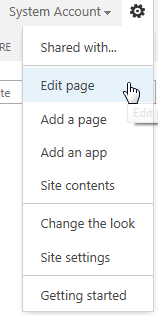 There is also another way to reach the Password Change Settings. First we need to go to the site where Password Change web part is added. Find Site Settings menu on upper right corner and click on Edit Page.