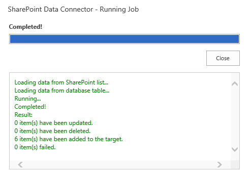 After the job run completely, click Close. In the SQL server database, check the table Computers. And then you will find that the items in the SharePoint list have been successfully synced to the SQL server database as following.