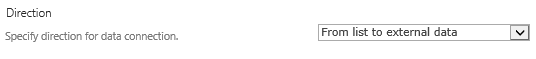 When the direction is set as From list to external data, then the SharePoint list is the data source, and the external data source is the target.