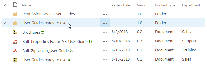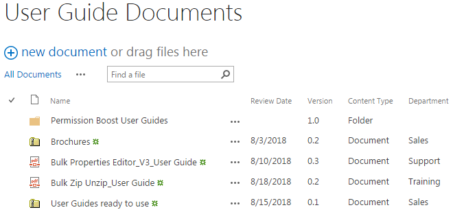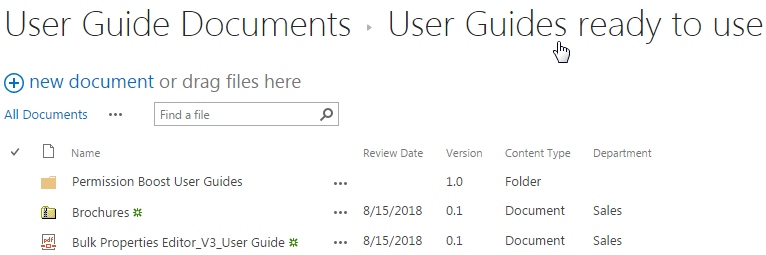 Click Close to see the result in the User Guide Documents library. You will find that a new folder named as User Guides ready to use has been created in the document library. This is the folder contains the documents extracted from the ZIP file User Guides ready to use. And because we left Remove the ZIP file after extraction unchecked, so the ZIP file (User Guides ready to use) still exists in the document library as well as the new folder.