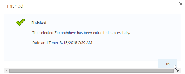 Overwrite existing files: With this option checked, the existing files in the document library will be overwritten by the new extracted ones from the ZIP file under the same path if the existing documents in the document library are included in the ZIP file. If this option is unchecked, and the existing documents in the document library are included in the ZIP file, after extraction, under the same path, the existing files in the document library will stay the same, and the new extracted ones will be just ignored. Note that only existing files under the same path will be overwritten by the new extracted ones if you checked this option. This option is checked by default.