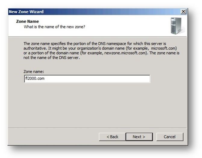 Input the zone name fl2003.com, click Next.